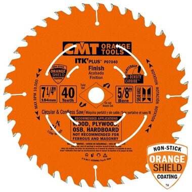 A new saw blade which reduces material waste and demand on the saw, while delivering reliable, industrial-quality performance cut after cut! This blade features a heavy-duty steel plate (44 Rockwell) for higher resistance during work, laser-cut heat expansion slots and sound dampening channels to prevent the tool from warping during rotation and greatly reduce vibrations! Blade teeth are made of industrial sinter hip high-density carbide which prevents the tool from any material failure and guarantees a longer cutting life. Also, the new shear angle grind on the teeth front face produces smooth cuts, reduces the blade cutting force and improves the cutting speed, setting a new standard for performance and value. Last but not least, the blade non-stick orange shield coating keeps the blade running cool, reduces pitch build-up and protects against corrosion. Ideal for all woods including wet lumber. This outstanding saw blade is delivered in practical clamshell packaging.